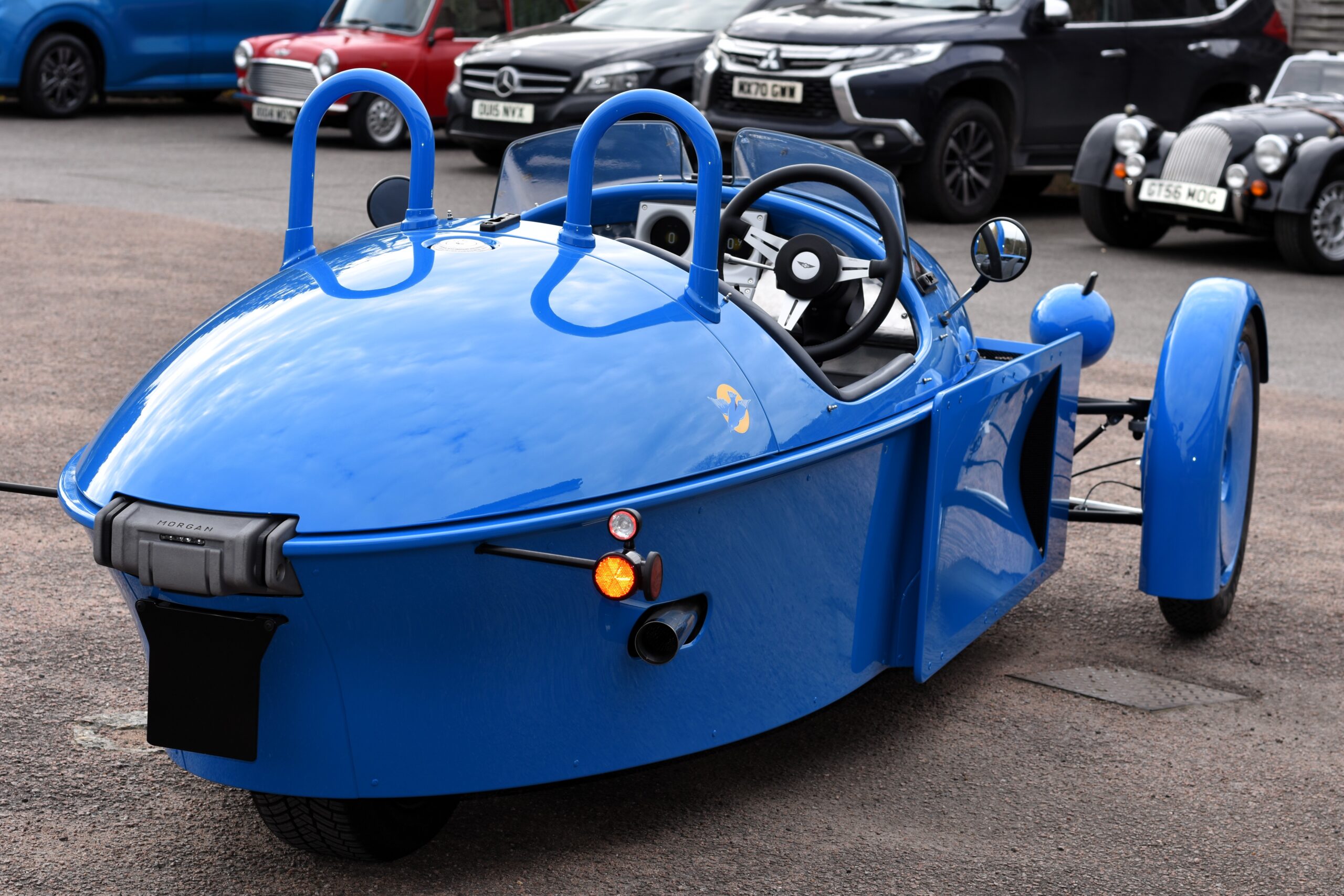 An extensive list of features includes CN7 colour-matched paint, wheels, headlight pods and cockpit hoops, gold Morgan wings badge, Bluebird graphics and a machine-turned aluminium dashboard.