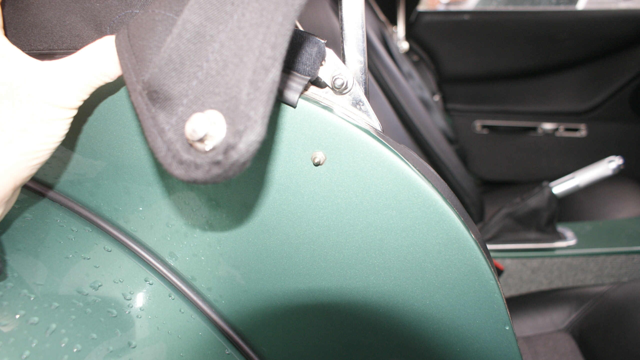 For “modern” CX Morgan cars – Tenax stud to attach hood to on rear panel ( see picture for location). these can snap off if the hood is incorrectly lowered/raised.
